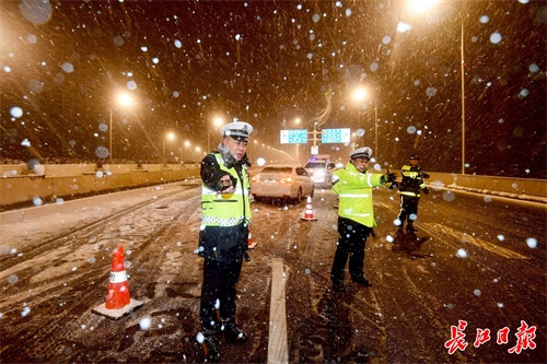 民警在杨泗港快速通道上引导车辆。 长江日报记者 史伟 摄