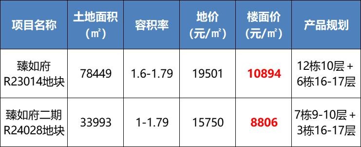 值得一提的是,臻如府地块是由中海和南通轨道置业联合摘牌,当时拿地楼面价约10894元/㎡,对比R24028地块与臻如府地块各项信息可以发现,在容积率、产品形态基本一致的前提下,新地块楼面价比臻如府降低了2088元/㎡,开发商是否会在户型配比以及定价逻辑上作出调整?我们持续关注。