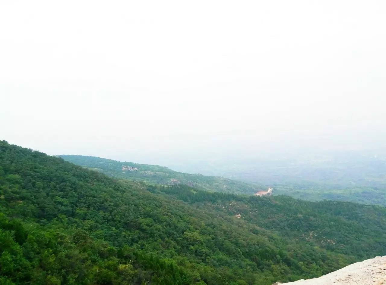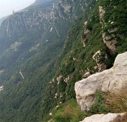 我们不停地从小路往上攀爬,虽然存在危险,但是相比一成不变的走台阶而言,还是具有一定的挑战性。历经千辛万苦,爬到了一处宽阔的大石头上,站在石头上向远处看,视野非常开阔。
