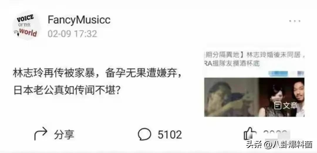 台媒曝出,林志玲被老公黑泽良平家暴,由于出手太重,导致鼻子被打烂,假体掉落,才会回到台湾做修复。