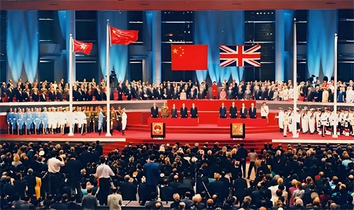 1997年6月30日午夜,香港的主权交接仪式在香港会议展览中心隆重举行。时任中国国家主席江泽民、国务院总理李鹏以及英国查尔斯王子和最后一任港督彭定康等出席了这一历史性时刻。随着英国国旗和香港旗的降下,中华人民共和国国旗和香港特别行政区区旗冉冉升起,标志着香港正式回归祖国。