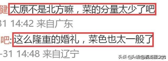 网友吐槽:“这么盛大的婚礼,菜品太普通了。”还有人说太原在北方,菜的份量太少。