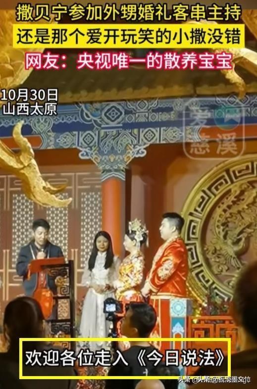 事实上,当天的婚礼邀请了一位专业的主持人,而撒贝宁只是以他的表弟的身份在台上发言。但他一出场,就有春晚的气氛,爆料十足,逗得嘉宾哈哈大笑。