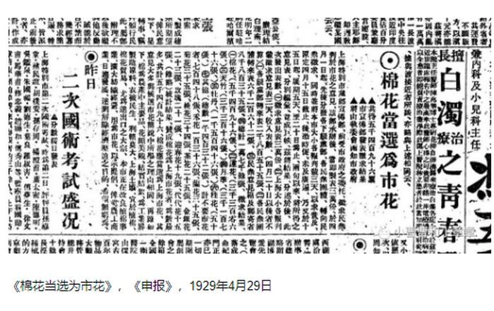 1928 年开始,国民政府各地开展了市花的评选活动,至1929年底,各地陆续评选出市花,如南京是兰花、北平是菊花、广州是红棉花、汉口是石榴花。而上海呢?是棉花!