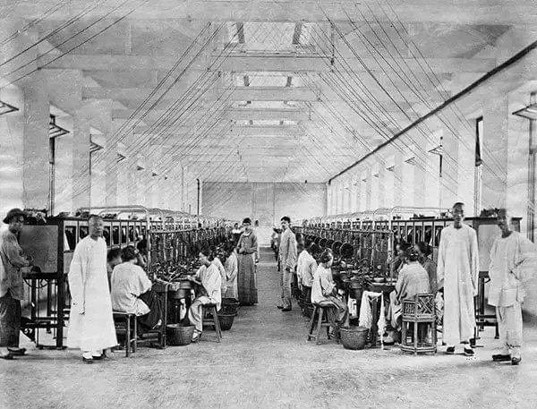 中国第一家现代化的棉纺织厂就是上海机器织布局,于19世纪80年代初开始运营。1913年至 1925年间,中国的机械织机数量增加到了3倍多,到1925年,全国有118家工厂,配备有300多万支纱锭,雇用了25万多工人,其中一半集中在上海。