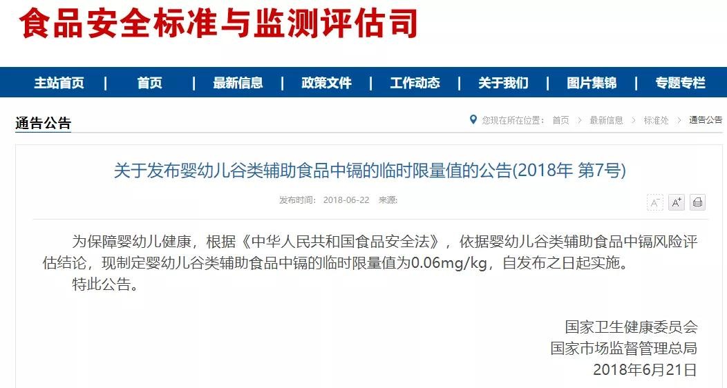 那这个影响有多大呢?以至于国家食药监总局2018年专门发文,限定宝宝辅食中镉的含量不得超过0.06——但这个标准,到了初哆咪辅食面条这里,放松到了0.1,又是将近2倍。