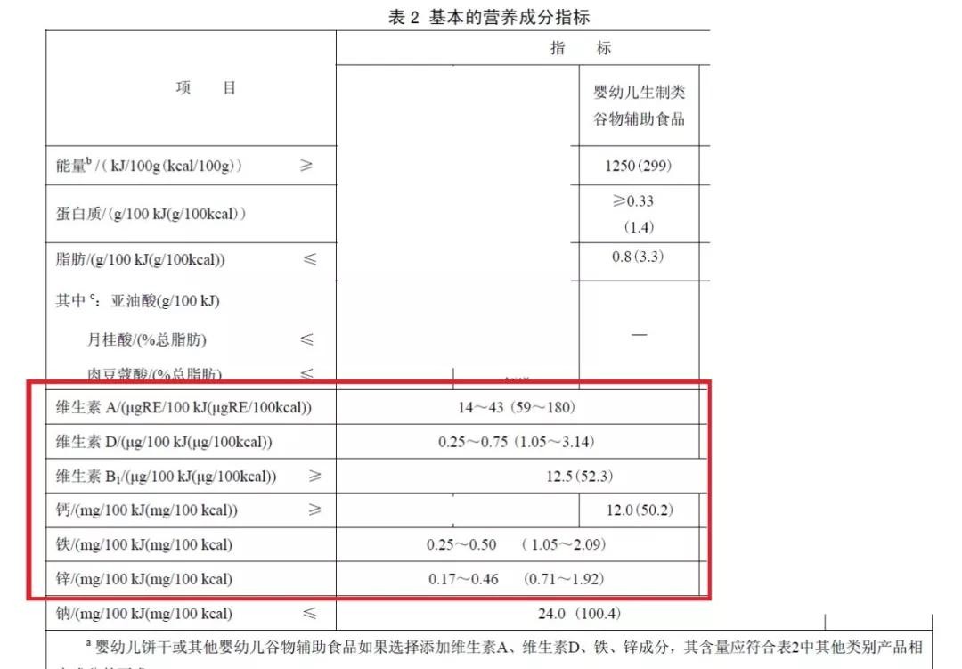 (上图:国标GB10769-2010:食品安全国家标准-婴幼儿谷类辅助食品)