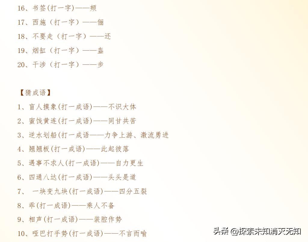 特精选了100条妙趣横生、涵盖各类知识的元宵节灯谜及其答案,邀您一同感受这份独特的文字游戏魅力,体验中华民族传统节日文化的博大精深。