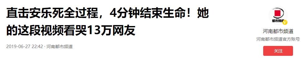 河南都市频道:2019-06-27《直击安乐死全过程,4分钟结束生命!她的这段视频看哭13万网友》