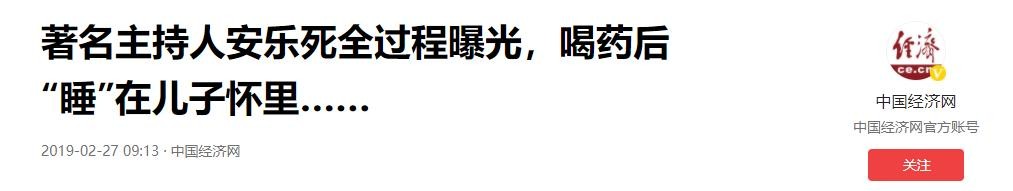 中国经济网:2019-02-27《著名主持人安乐死全过程曝光,喝药后“睡”在儿子怀里……》