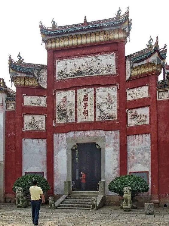 后因楚国被灭,屈原悲忿不已,遂怀沙自沉。后人为几年他,修建了屈子祠。现为省重点文物保护单位。