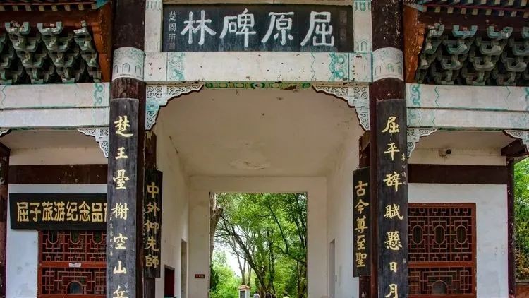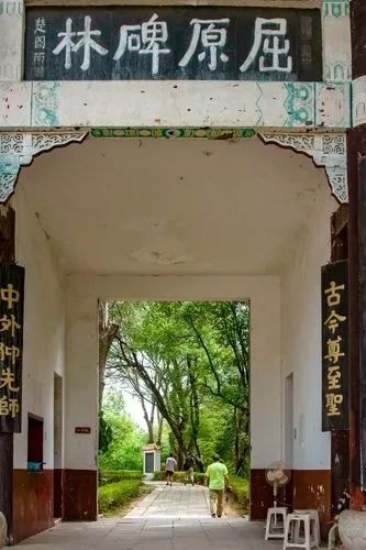 这对楹联,精辟地概括了屈原忧国忧民、大义凛然的伟大壮举。中、后进之间有过亭,过亭墙壁嵌有许多石碑,镌刻着后人凭吊屈原的诗文词赋。