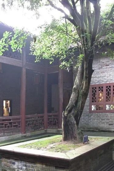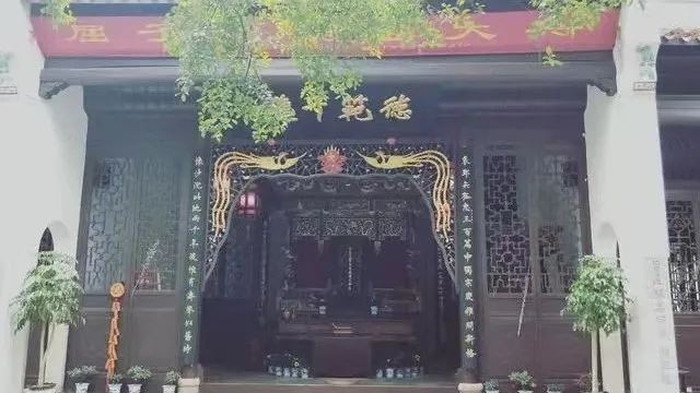 穿过照壁有天井,花岗岩铺地,两棵近300年树龄的桂树古老而沧桑。天井四周有回廊,两侧有偏厅和厢房。中厅设神龛,神龛上游龙附风,金光烁烁。内供黑底金字“故楚三间大夫屈原之神位”牌。