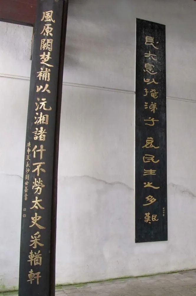 前厅屏风照壁上刻有司马迁写的《史记·屈原列传》全文雕屏,雕屏高悬其上的黑色横匾书有“光争日月”四个镏金大字。