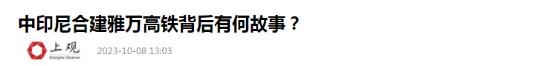 3、 上观新闻:中印尼合建雅万高铁背后有何故事?