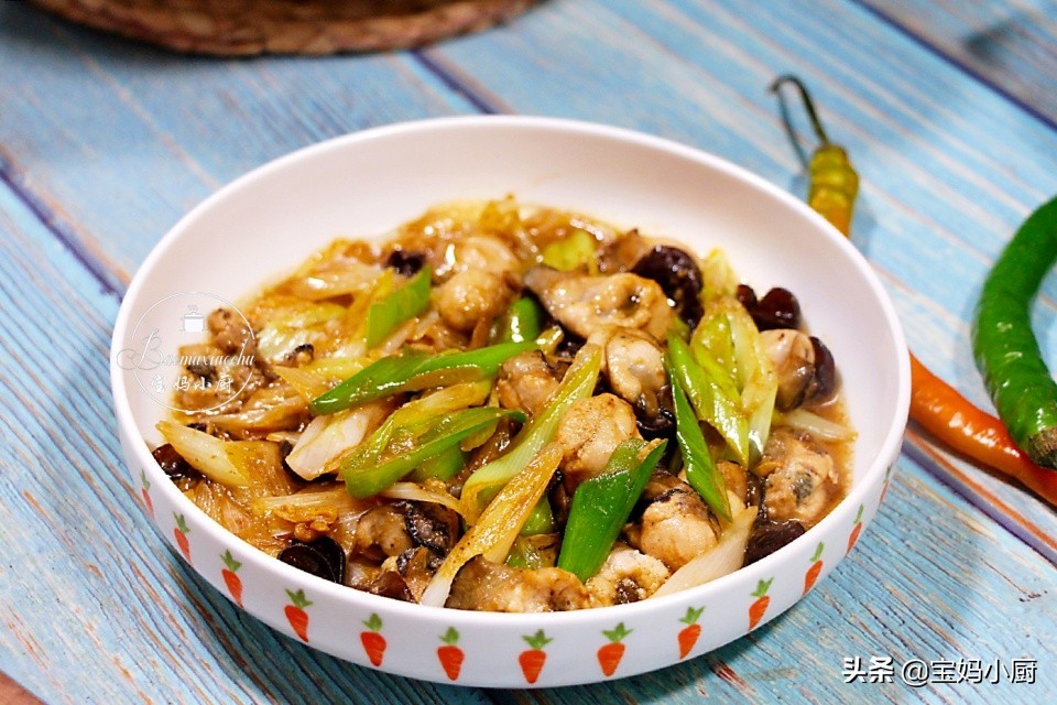 香喷喷又鲜美的大葱炒生蚝就做好了,饭要多焖哦,少了不够吃!