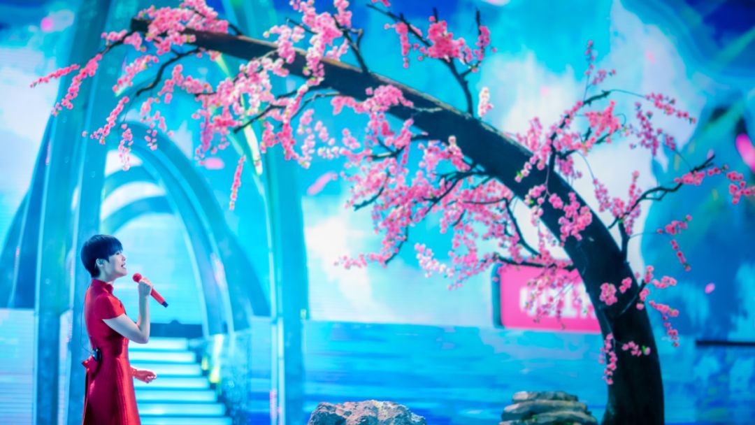 为了与独特的国风舞台相融合,李宇春特地在东方卫视春晚选择了国风歌曲《千年游》。独特的声线、诗意的词曲,与环屏投射出的江南烟雨、十里桃花,勾勒出一幅最美的诗意山水图。