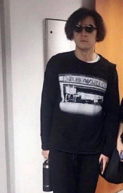 照片中的胡歌上身是白色内衬和黑色长袖,下身穿着黑色长裤与高跟,手上拿着黑色养生保温杯和裹着黑色手机壳的手机,脸上戴着黑色墨镜。原本这么一身也是酷酷的,单身配上这个爆炸头,就真的让人发笑,这么狂野,这人还是胡歌吗?