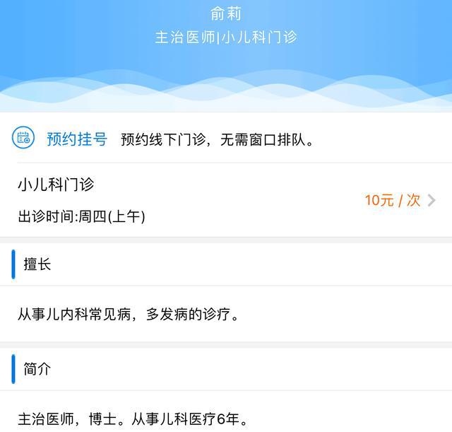 现代快报记者在南方医科大学南方医院微信公众号上看到,俞莉为小儿科门诊主治医师,从事儿科医疗 6 年,是博士。擅长儿内科常见病,多发病的诊疗。6 月 20 日下周四上午出诊。