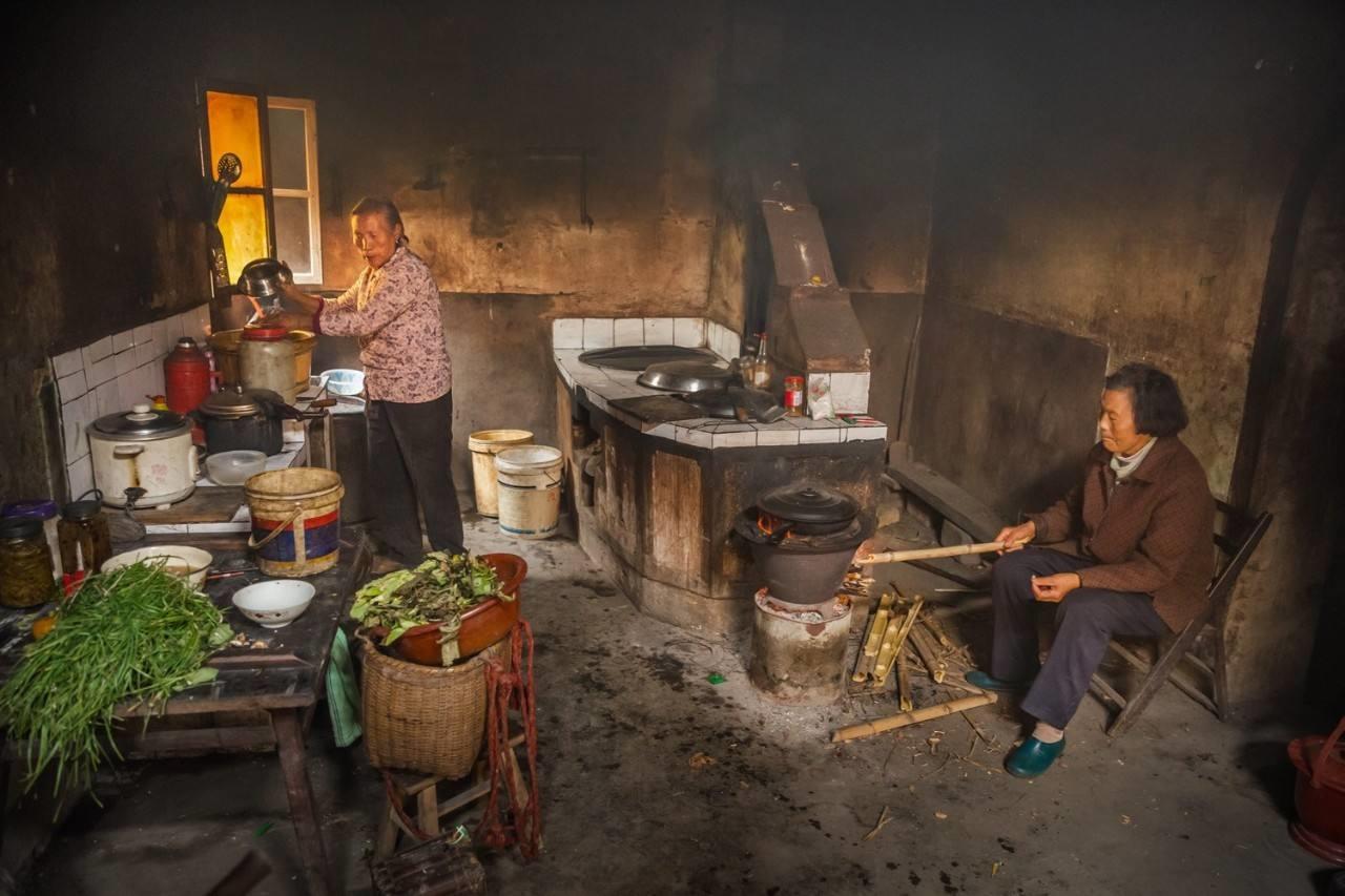 到得后来,母亲才从容起来。每次从异乡回到家里,母亲都像是在办一件郑重的大事,她总是嫌烧蜂窝煤的炉子太小,施展不开手脚,要父亲揭开盖着的灶台,仔细地清洗干净,用来给我们做饭。而蜂窝煤的炉子上,总会煮着耐煮的鸡肉、火腿、腊肉、莲藕、红豆等孩子们爱吃的东西。灶台上热气腾腾,屋檐下的烟囱里也冒出了久违的炊烟,袅袅地在村舍和树梢上盘旋,终于消散在蔚蓝的天际里了,和漂浮的白云做了伴。倒是我们,总还怀念着灶膛里被母亲嫌弃的土豆和红薯。到了晚上,一家人看电视的时候,她就会点燃自己留存下来的木炭,绝没有一点烟渍,硬要烤来自己用米饭舂好的粑粑,给孩子们宵夜。母亲走了,灶台就闲了下来,最后被砸碎、拆除,变成了一堆砖瓦和泥坯,丢弃在山坳里。