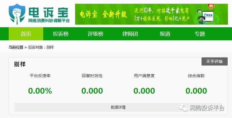 根据“电诉宝”2022年至今受理的跨境电商领域用户有效投诉显示(依据投诉量排行),别样排名第八位。最新评级为“不予评级”。其他被投诉的类似电商平台还有:洋码头、全球速卖通、中免日上、熊猫生活、天猫国际、海带宝、考拉海购、海狐海淘、德国BA保镖商城、亚马逊、敦煌网、86华人商城、闪亮时刻海淘、海豚家、冰冰购、羊贝比海淘、Feelunique、洋葱、剁手帮、86mall、行云货仓、海淘1号、Bonpont、中邮海外购、wish、海淘app。