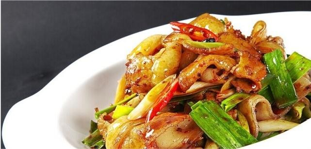 (5) 炒久上火放油烧至7-8成热,投入浆好的腰花,稍滑迅速控油,勺留底油,下入葱花,煸香,下腰花,木耳,冬笋,倒芡汁旺火急炒,淋明油出久即可.