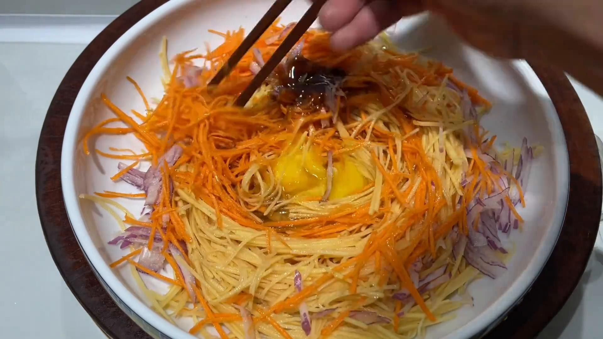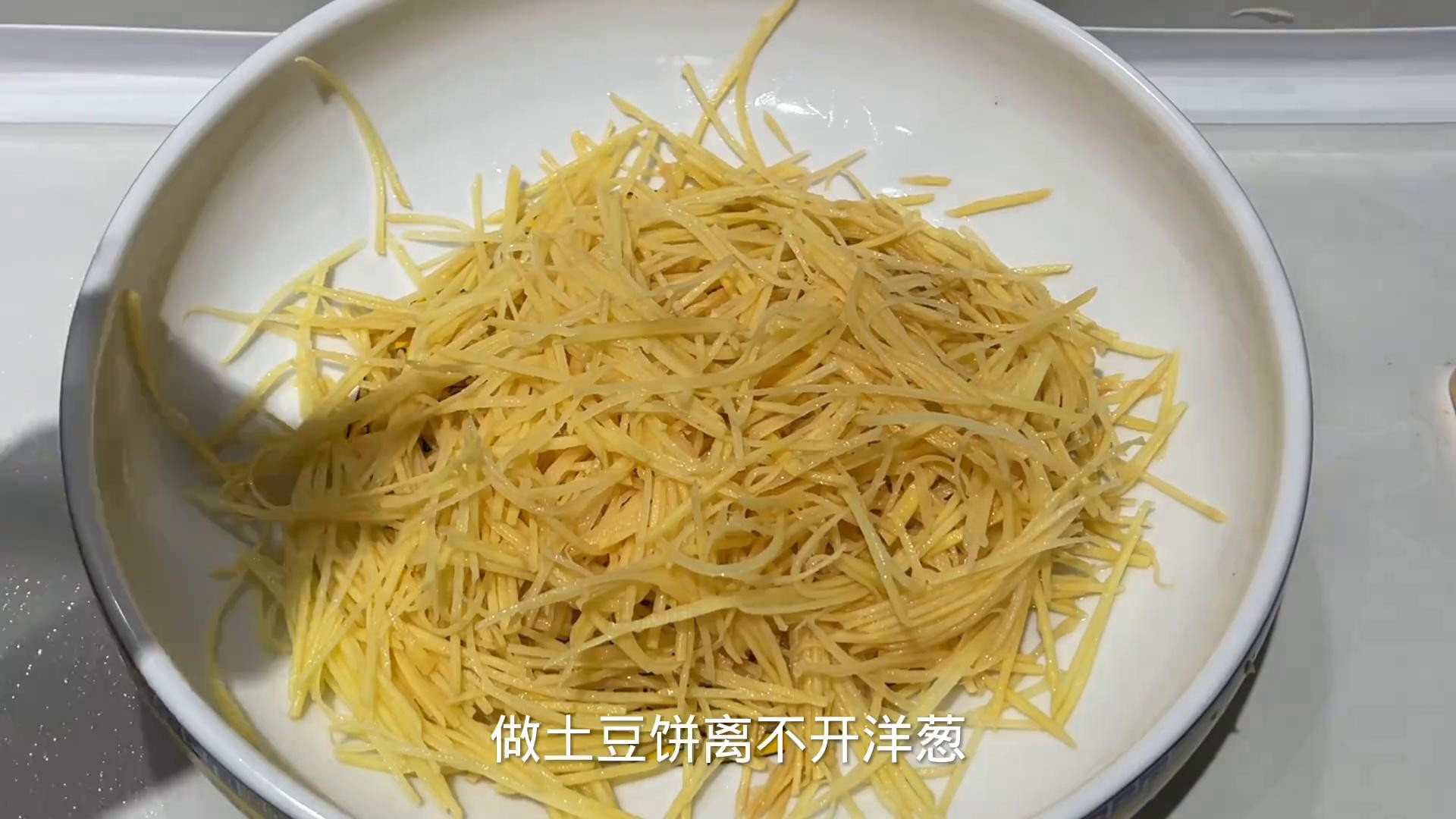 ·做土豆饼,切好的土豆丝不要清洗,成这种状态就可以了。