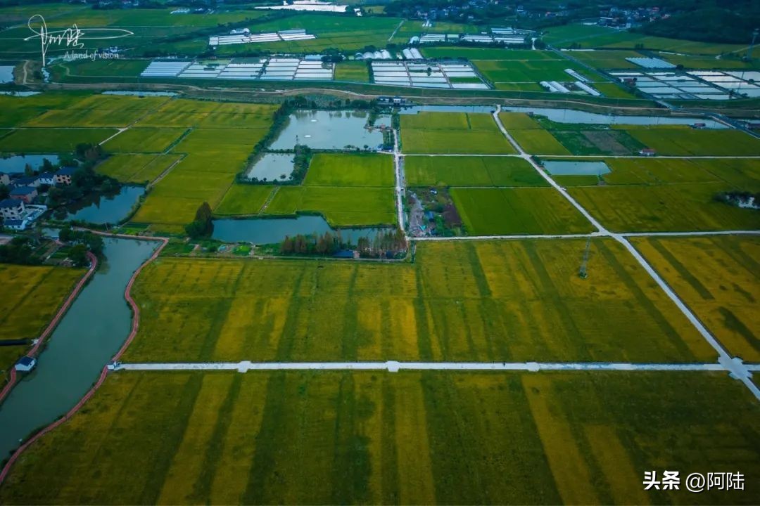 余杭径山不仅有禅茶一味和花海,航拍视角下的万亩良田也颇为壮观