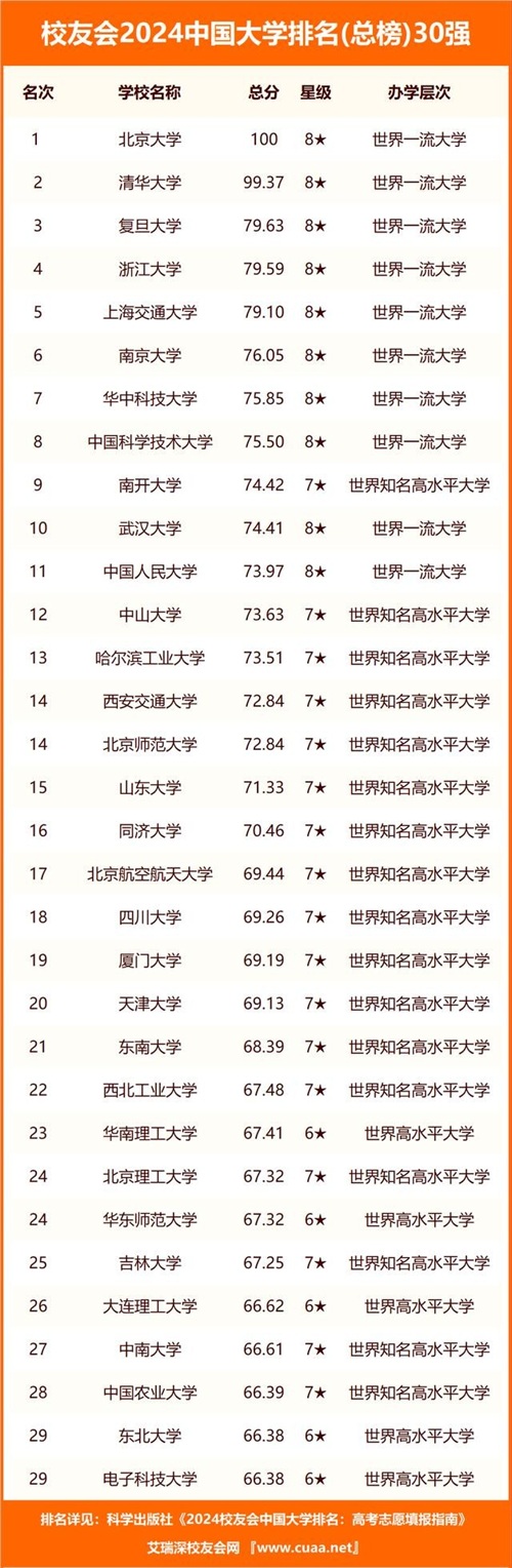 校友会2024中国大学排名详细评价指标体系