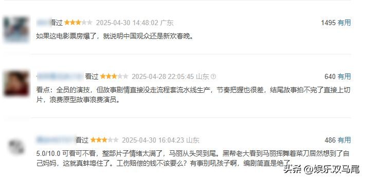 但是观众评价两极分化,豆瓣给了 6.7 分,有人觉得剧情有点套路,但也有人被真实故事打动,尤其是女性观众。前几天马丽还在采访中哭诉被与沈腾的CP传言折磨的不行,也是增添了几分喜剧色彩。