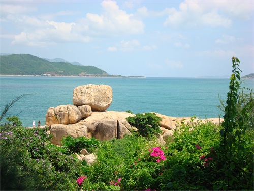 芽庄五指岩又叫钟屿石岬角,位于芽庄主城北面。五指岩是因为那块最大的石头上有五个指印而得名。虽然景区不大,但是海岛风光和乡土风情非常不错。这里原本就是一个普通的滨海小公园,只是由于香港影帝梁家辉主演的法国电影《情人》的外景拍摄地选择了这里,电影上映后五指岩也就跟着走红,所以这里又叫情人岛。尽管由于《情人》的大尺度表演在国内属于禁片,但这丝毫阻挡不了五指岩走红的节奏。