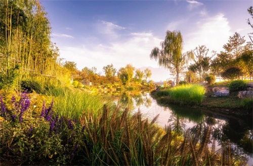 浩浩乎,八水绕长安,荡荡兮,渼陂映秦川。西安渼陂湖水系生态文化旅游区的建设,有效改善了周边地区的自然生态环境,累计栽植水生植物约18万平米,新增景观绿化约25万平米。鸟儿悄落水畔,临水照花、柔如彩虹,景区内翠竹屏障,芦苇随风摆动。湖光山色两相和,渼陂恰似江南春。