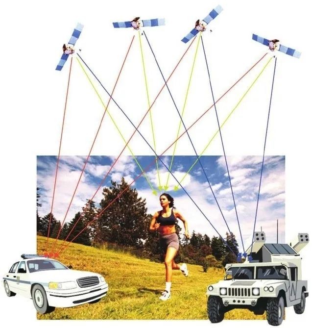 卫星定位原理就把已知建筑物“搬到了”太空,通过卫星进行导航定位。为了使地球表面绝大部分地区都能接收到卫星信号,对太空中卫星的数量有一定的要求,如美国的全球定位系统(GPS)星座由24颗卫星构成,除了极区之外,地球表面任一位置都能同时接收到4颗以上卫星的信号,以确保定位的精度。