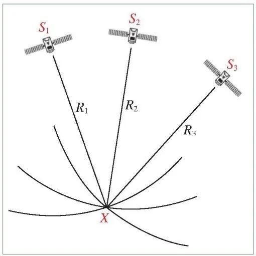 怎样确定待定点到卫星的距离(R)呢?这个问题看似复杂,其实原理也很简单,就是将电磁波从卫星传输到用户(待定点)所用的时间乘以光速。在具体操作过程中,卫星和待定点的接收机已经把许多事情都准备好了。导航卫星发射编码信号,接收机接收到的信号会有时间延迟,用这个延迟时间乘以光速,就是待定点到卫星的距离。