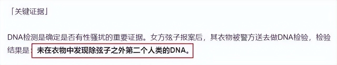 虽然这点可以解释为弦子当时可能认错了人,但该记者在这些质疑的同时,也放出了一个关键性证据,弦子的衣物曾被警方送去做DNA检验,但检验结果是:未在衣物中发现除弦子之外第二个人类的DNA。