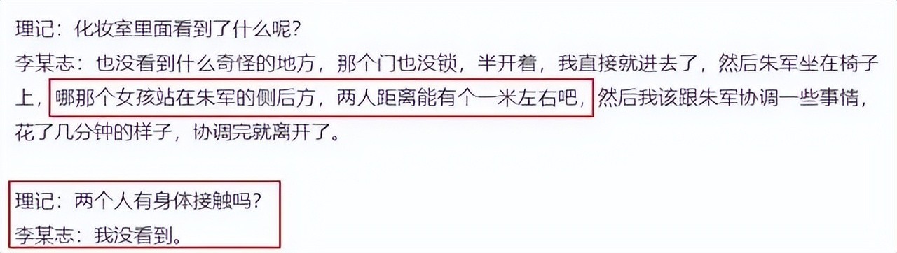 但朱军的说法是两人只是聊天,没有发生任何肢体接触,没有发生任何不愉快。