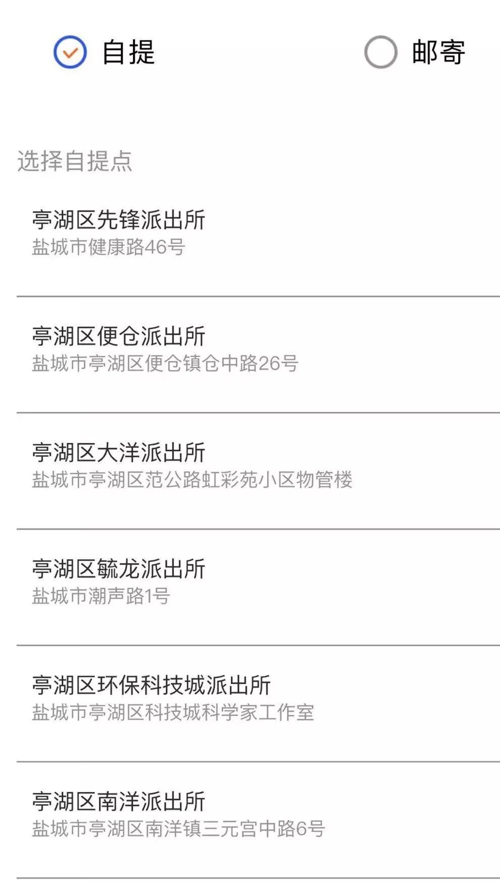 3、信息全部上传后,选择“领取方式”,可自提可邮寄