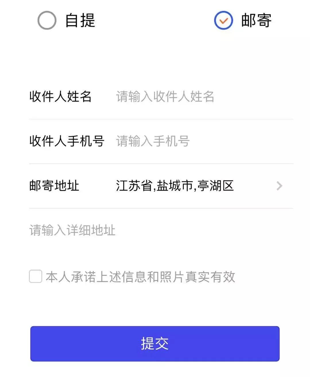如选择邮寄,则按照要求填写好收件信息