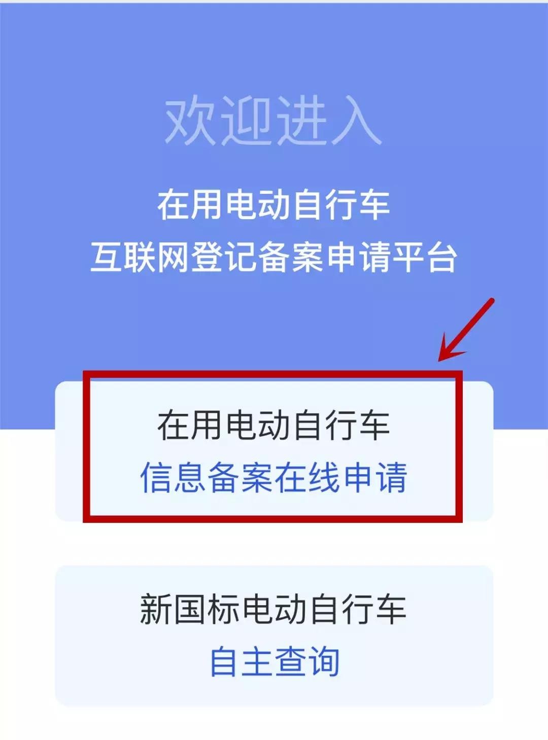 “在用电动自行车互联网登记备案申请平台”