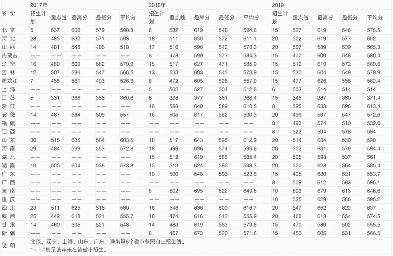 1、国防科技大学2017-2019年在各地录取分数线