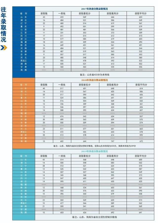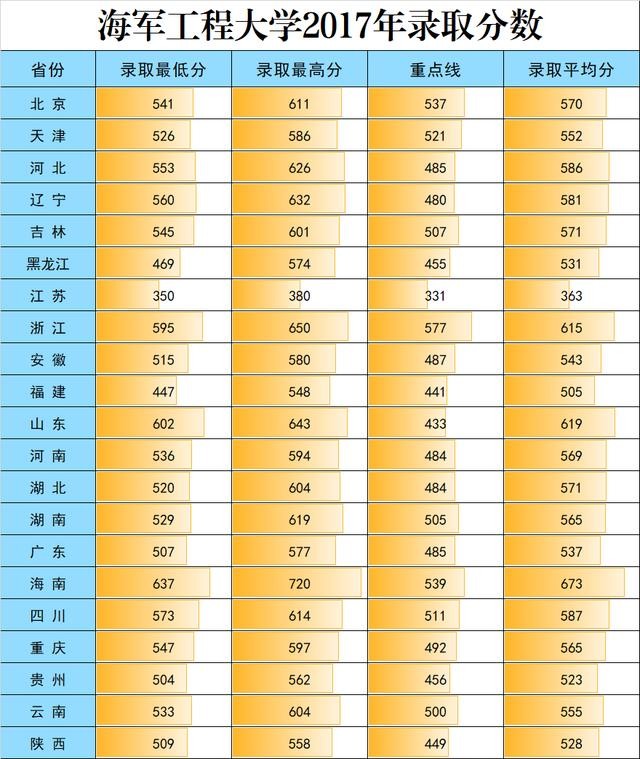 12、海军工程大学2017-2019年在各地录取分数线
