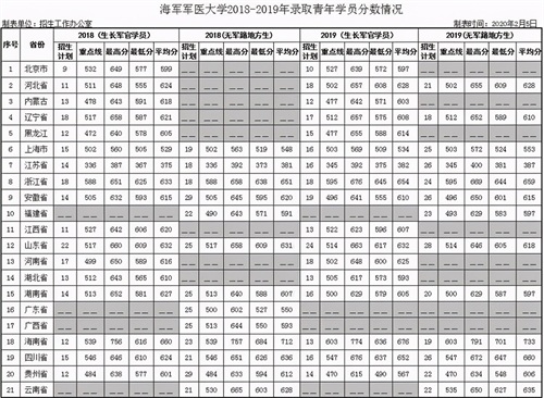 16、海军军医大学(第二军医大学)2018-2019年在各地录取分数线