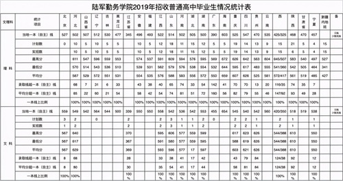 11、陆军勤务学院2018-2019年在各地录取分数线