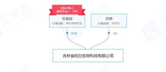 企查查显示,吉林省粒白生物科技有限公司(存续)法定代表人是苏耕,而大股东、实际控制人、最终受益人是张要超。