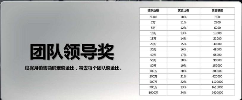 团队领导奖,根据月销售额确定奖金比例,减去每个团队奖金比例。