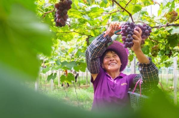 永新县在中乡在中村葡萄基地的果农正在采摘葡萄