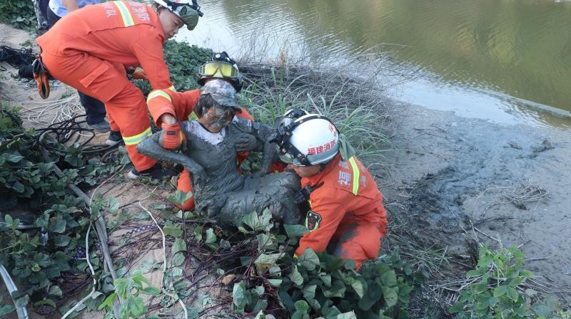 中年妇女被救上岸后,身上从头到尾都是淤泥,唯有眼睛可以看得清楚。经被困妇女介绍,事发前,一件衣服飘落在沼泽地上,她小心翼翼的踏进沼泽捡衣服,无奈刚迈出沼泽地两步,双腿就无法动弹甚至越陷越深,为此她大喊救命。幸好消防指战员及时营救,避免了一场生命悲剧的发生。