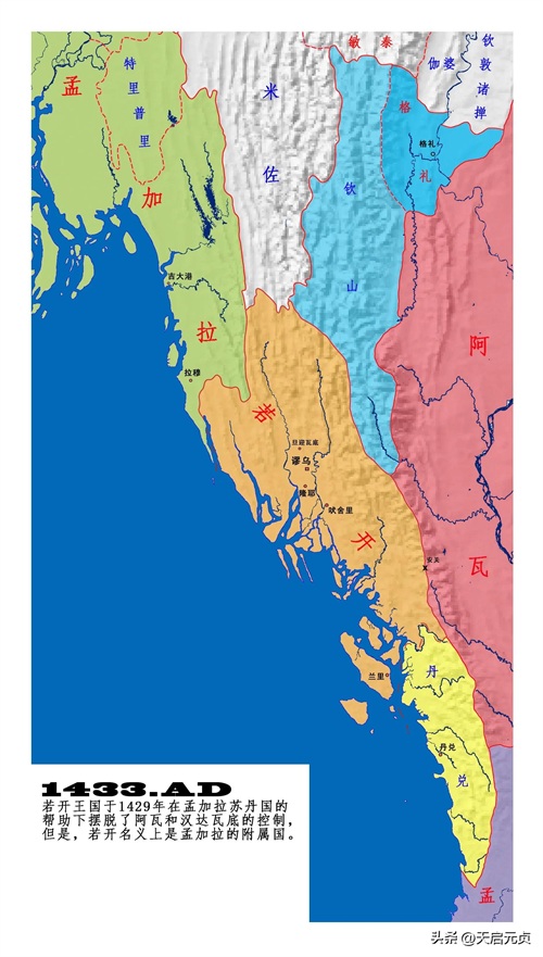 孟加拉苏丹国进行领土扩张,与周边的两大强国阿萨姆王国与若开王国经常上演“三国杀”剧情。其中,孟加拉与若开打得最厉害,为了吉打港地区,反复争夺。没想到最后“鹬蚌相争,渔翁得利”,1528年让葡萄牙人给占了。