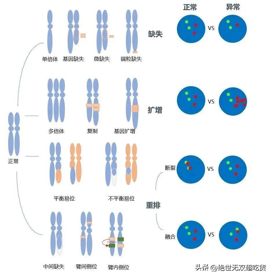 由于正常人的染色体/基因是二倍体,那么正常人的检测信号就是两个。排除影响后,当信号多于两个或者少于两个,便可判断染色体或者基因发生了异常(扩增或缺失)。