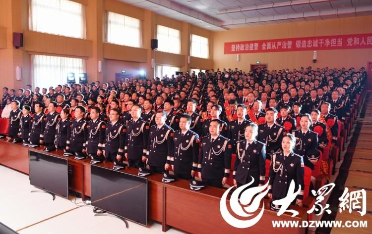 在警旗交接环节,退休民警代表将满载着荣誉、使命、责任和担当的警旗郑重传递到新警代表手中,勉励新警勇于传承济宁公安精神,不辱使命、再立新功。新警代表作出庄严承诺并在场上挥动警旗,象征着济宁公安精神弦歌不辍、薪火相传。全体民警重温入警誓词,高举右臂,紧握右拳,庄严宣誓,誓言铿锵有力,句句掷地有声,铮铮誓言响彻大地,初心使命牢记心中。